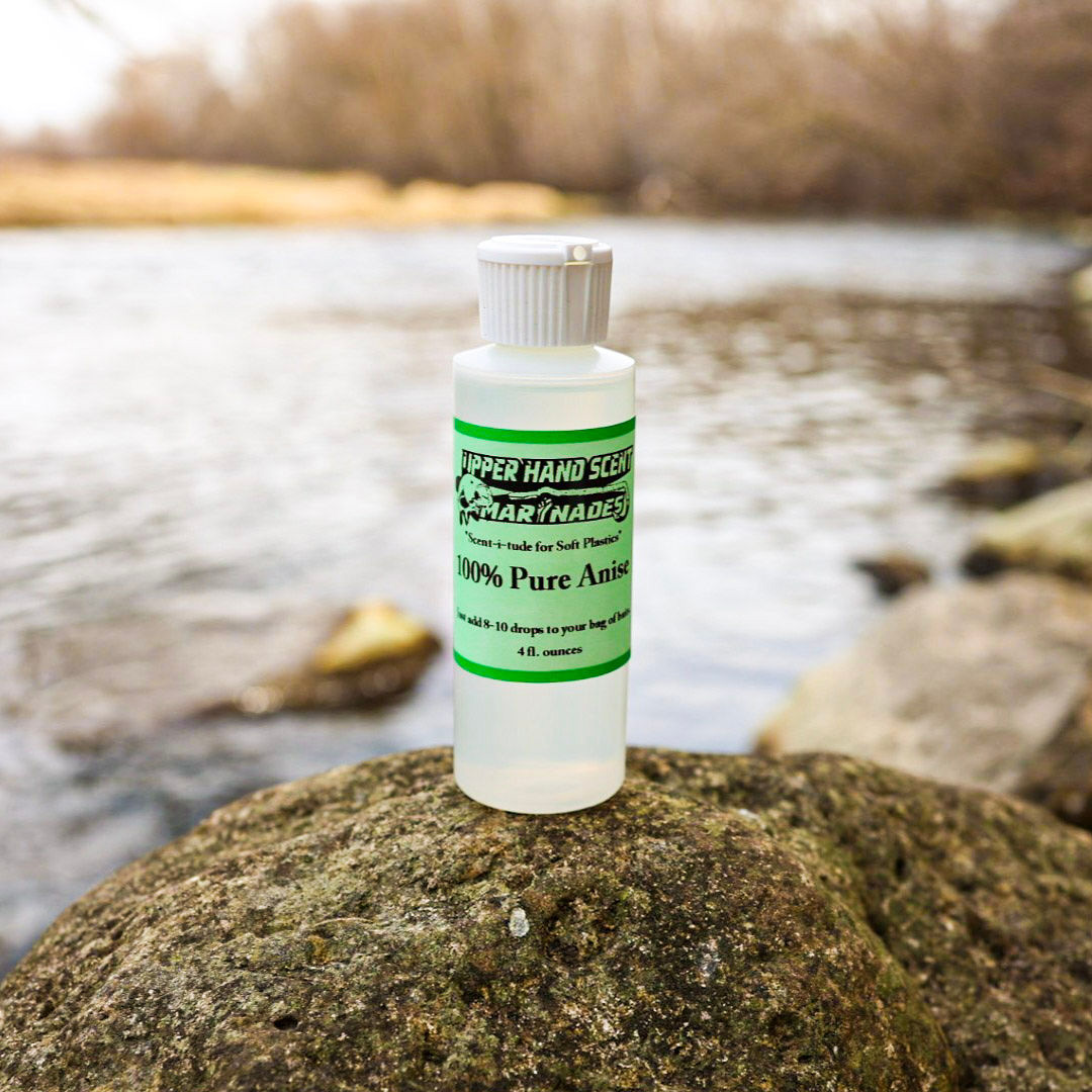 HOW TO USE: Multiple uses. Apply directly to soft plastic baits or simply add a few drops in your bag. Rub on silicon jig skirts or chatterbait/spinnerbait skirts. Can also be used on live bait for more scent drawing appeal. Reapply as needed. Upper Hand Scents are also 100% oil-based so they can be used to cook into hot plastic during bait production.