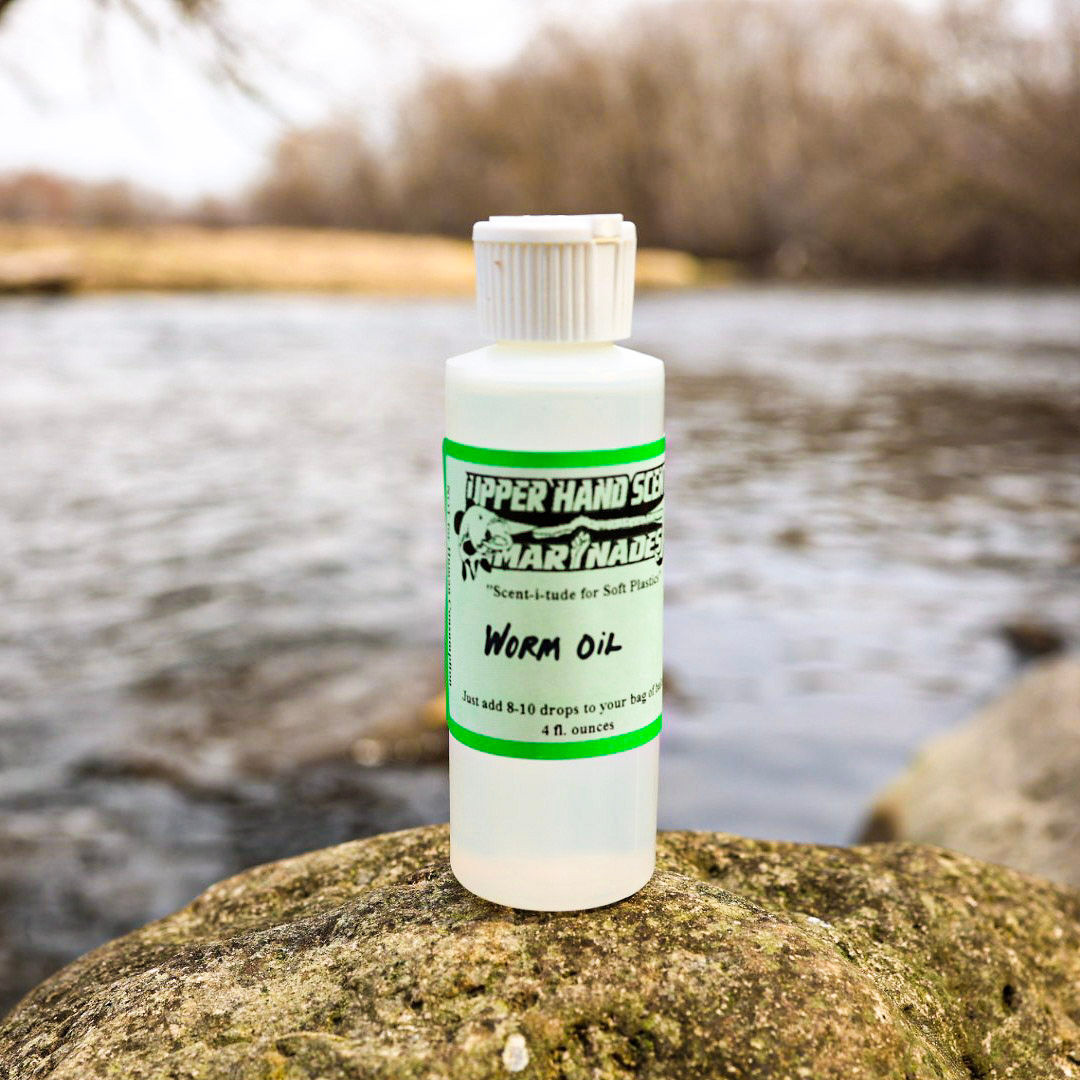 HOW TO USE: Multiple uses. Apply directly to soft plastic baits or simply add a few drops in your bag. Rub on silicon jig skirts or chatterbait/spinnerbait skirts. Can also be used on live bait for more scent drawing appeal. Reapply as needed. Upper Hand Scents are also 100% oil-based so they can be used to cook into hot plastic during bait production.